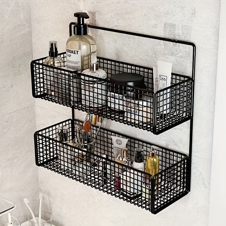Product Description Product name: bathroom storage shelf Material: Iron Colour: black, white Size: as shown in the picture Cautions