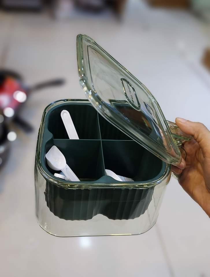 Product name:Seasoning Box 4-Grid Storage Multi-Grid Spice Box Condiment Dispenser Kitchen Seasoning Containers Spice Jars Herb & Spice Tools Product main material: Food grade plastic