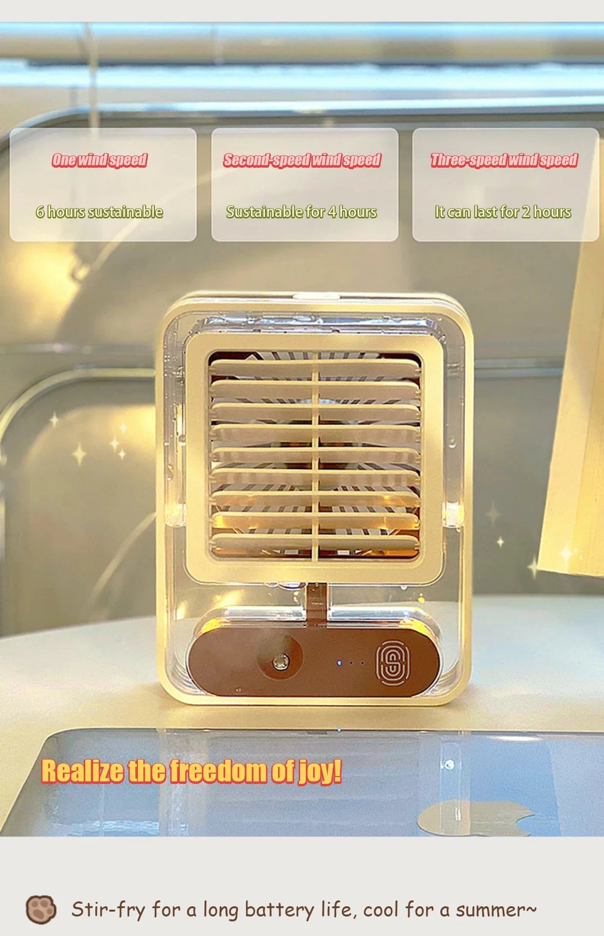 ๐ฌ๏ธ Stay cool and refreshed wherever you go with the Portable LED Desk Fan with Mist Spray! Beat the heat with its cooling breeze and refreshing mist, perfect for your desk, outdoor activities, or bedtime ๐. Its compact size, rechargeable battery, and LED lights make it a must-have for scorching summer days, ensuring you stay cool and relaxed on all your adventures.