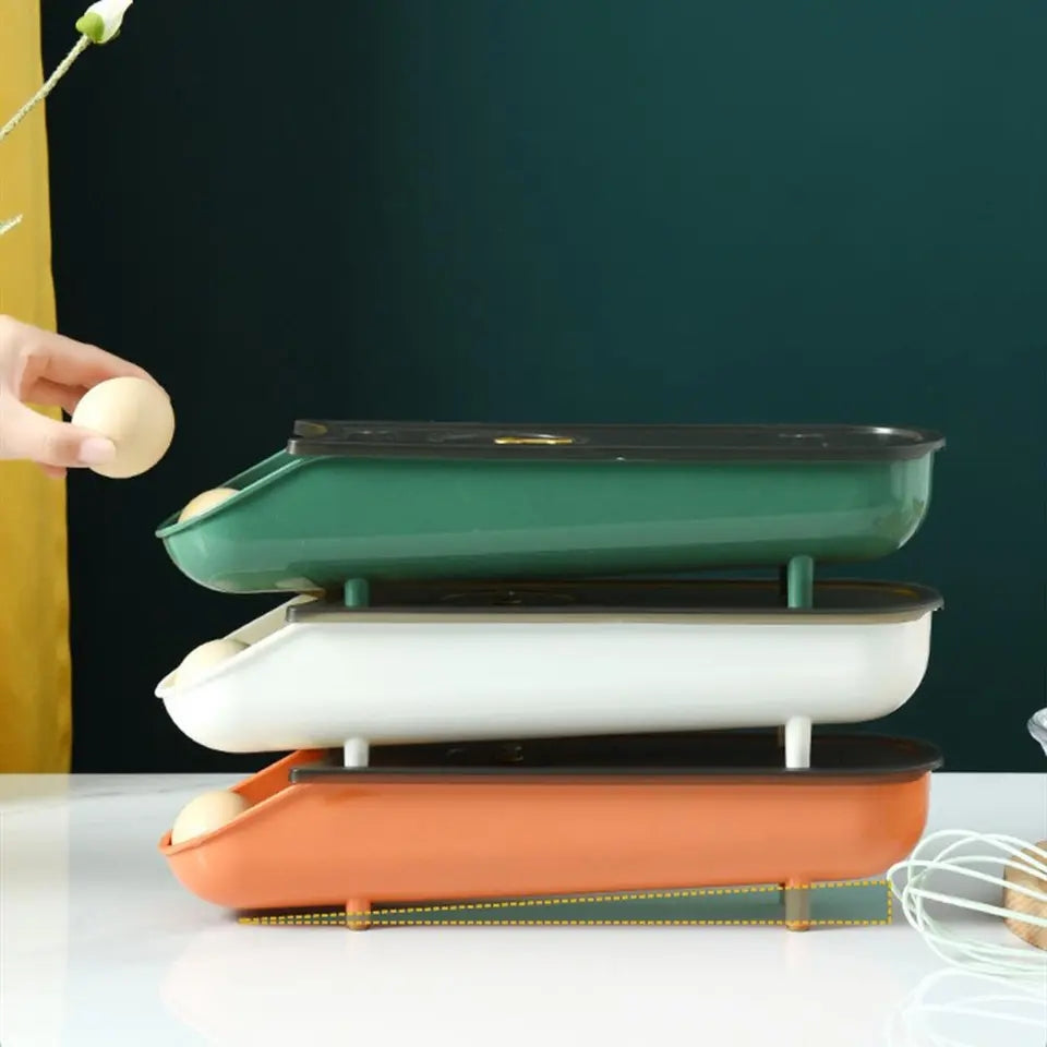 Egg Box For Refrigerator Slide Design Egg Tray Carrier With Lid Fridge Egg Organizer Egg Fresh Storage Box For Fridge