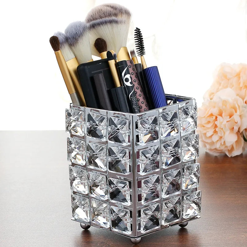 Specifications: Height: 115mm, Diameter: 95mm Perfect for storage Nail Brush & Cosmetic Tools Material: Stainless Steel with Plating and Crystal 2 Colors Optional: Gold, SilverFeatures:
