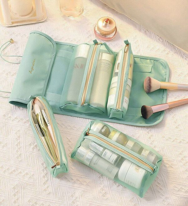 1,SEPARATE AND ORGANIZED:4 Compartment (removable) Roll-Up Makeup Bag for Travel, Personal Care, Cosmetic Organizer Bag.