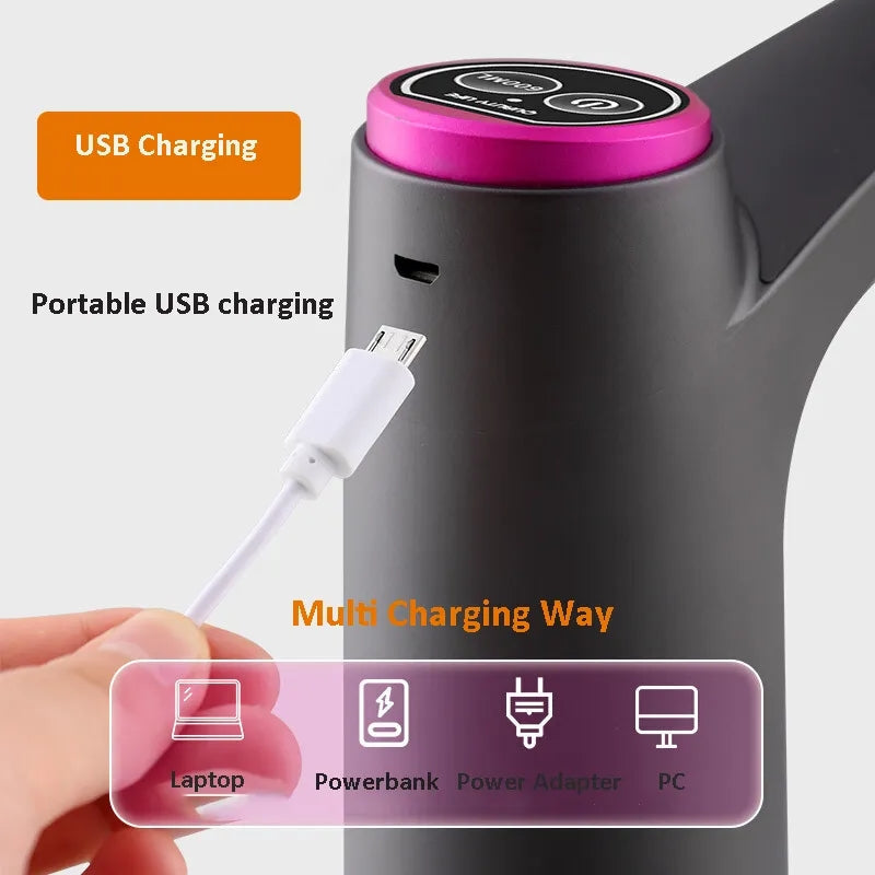 5. Built in USB rechargeable 1200mAh battery, can be used for 30-40 days or around 4-6 bottles of 5 gallon water once full charged