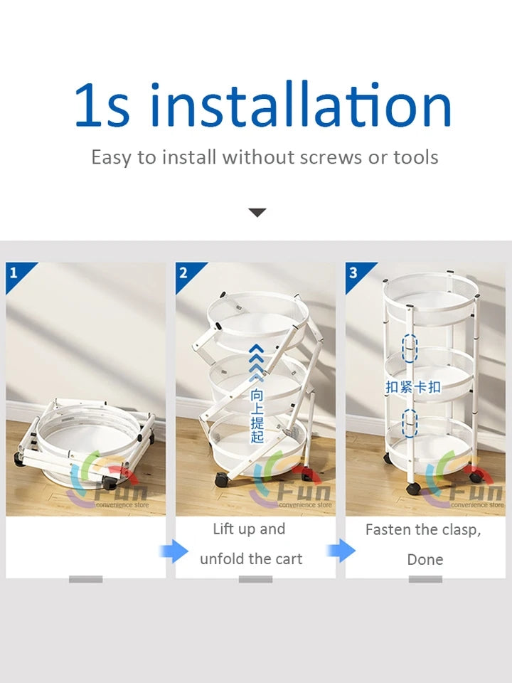 1. The storage rack is placed in the kitchen, you can store fruits, seasoning bottles, kitchen gadgets.