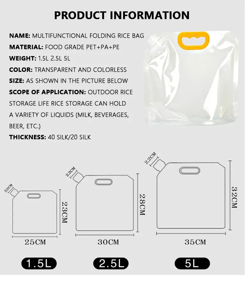 Product material: PA, PET, polyester, PE Capacity: 3Litre bag and 5Litre