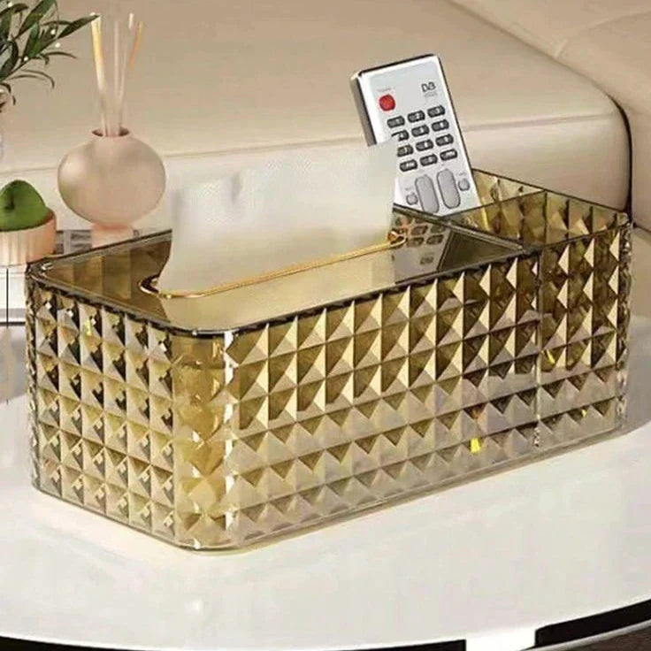 A wear-resistant and stain-resistant tissue box for organizing paper.