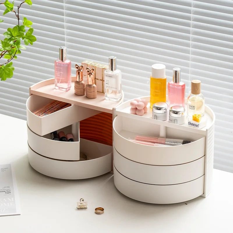 360-degree rotating design for convenient access to all beauty products.