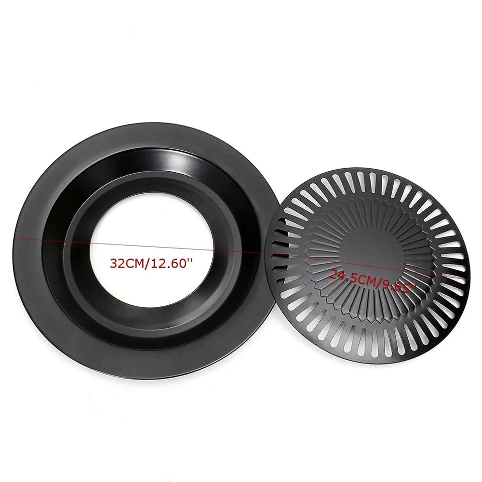 -Outer ring can be filled with water to trap drippings and prevent smoke and splatters.