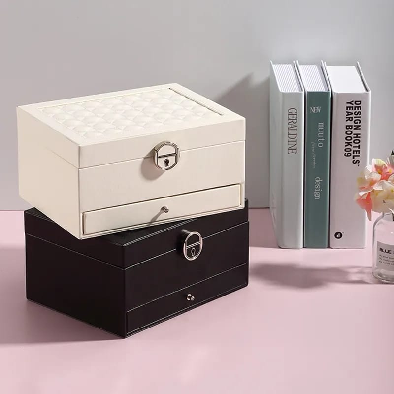 * Appearance: Three-layers Large PU Leather Drawer Jewelry Organizer Box
