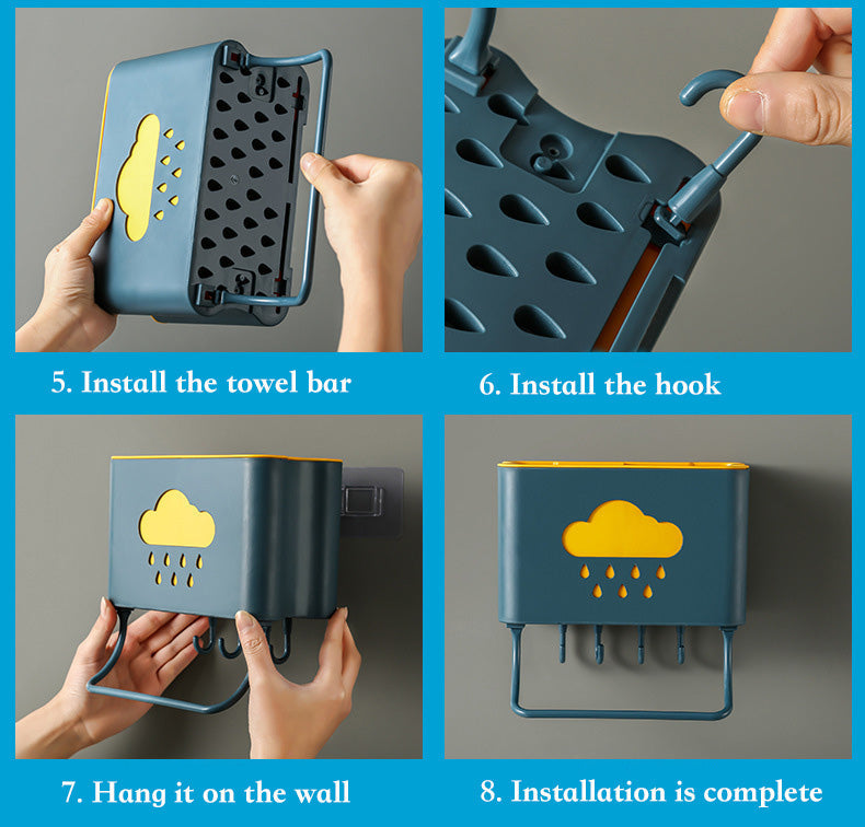 4. Draining rack design: The chopsticks draining rack tableware draining rack is equipped with drainage holes and a base, which is convenient for drainage and will not wet the desktop. Rack with hooks and hanging towels for easy storage of rags and towels to dry.