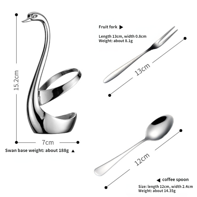 Quantity of one package: 1 pc Swan Base Holder+ 6 pcs Coffee Spoons