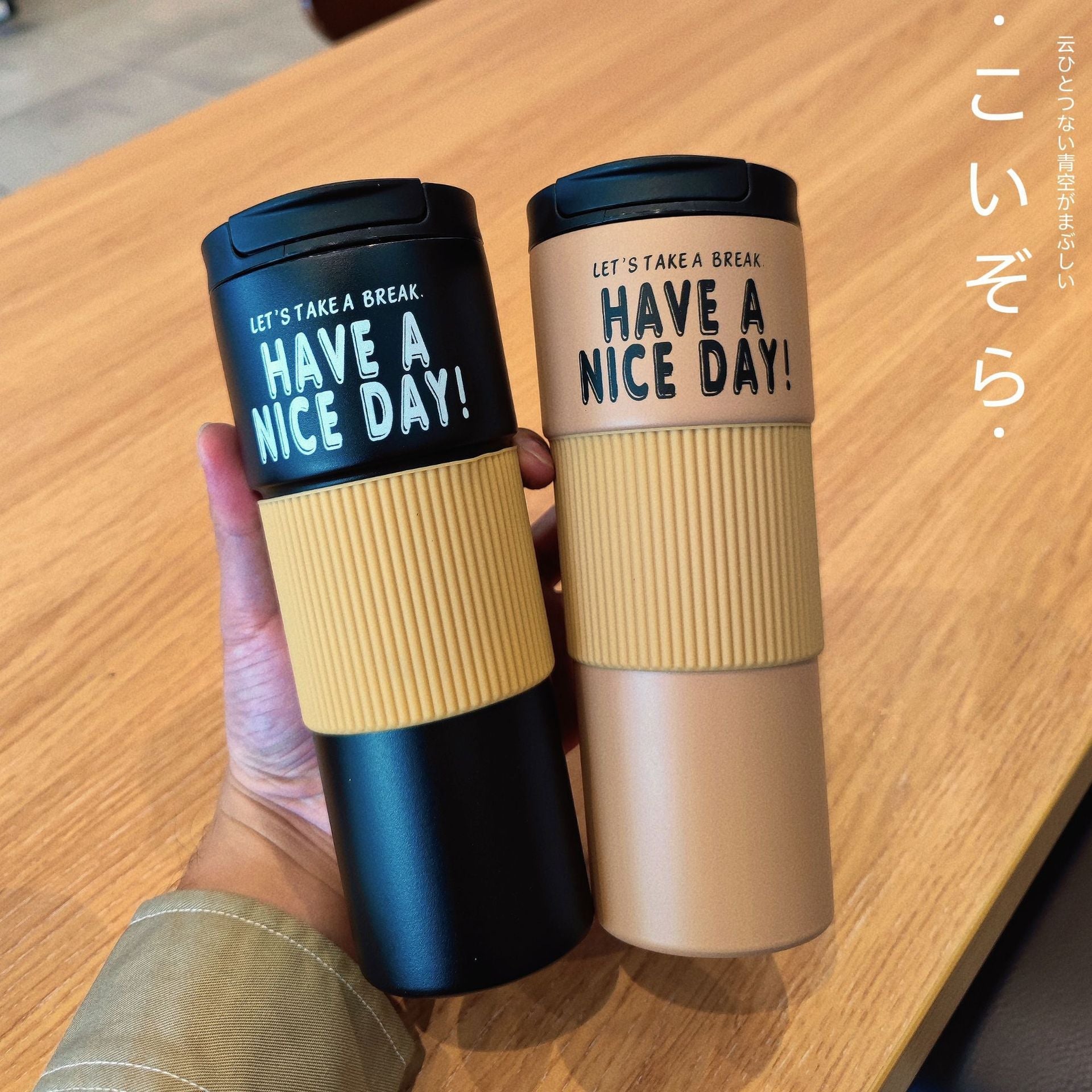 Your perfect eco-friendly reusable flask that is portable and fits perfectly on the cup holder of your car.
