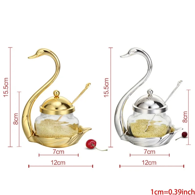 Spice Glass Jar Salt Sugar Bowl Pepper Coffee Storage Organizer Swan Rack Set