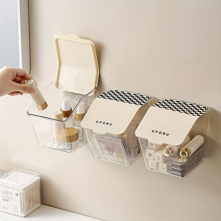 Comes with an adhesive, our wall-mounted storage box can be easily applied to any smooth and flat surface. And more, it also can be removed with ease.